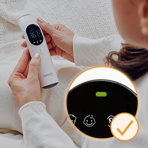 • Ugrađeno blago svetlo i tihi režim omogućavaju vam da merenja obavljate i noću, bez da probudite dete.