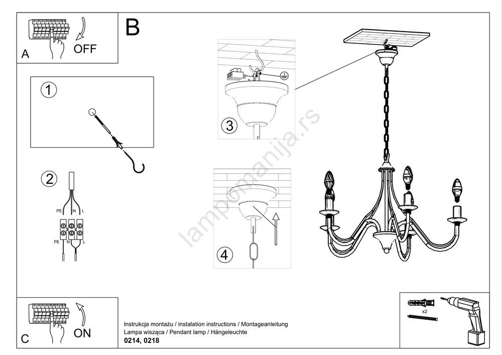 • Luster na lancu MINERWA 5 5xE14/40W/230V bela