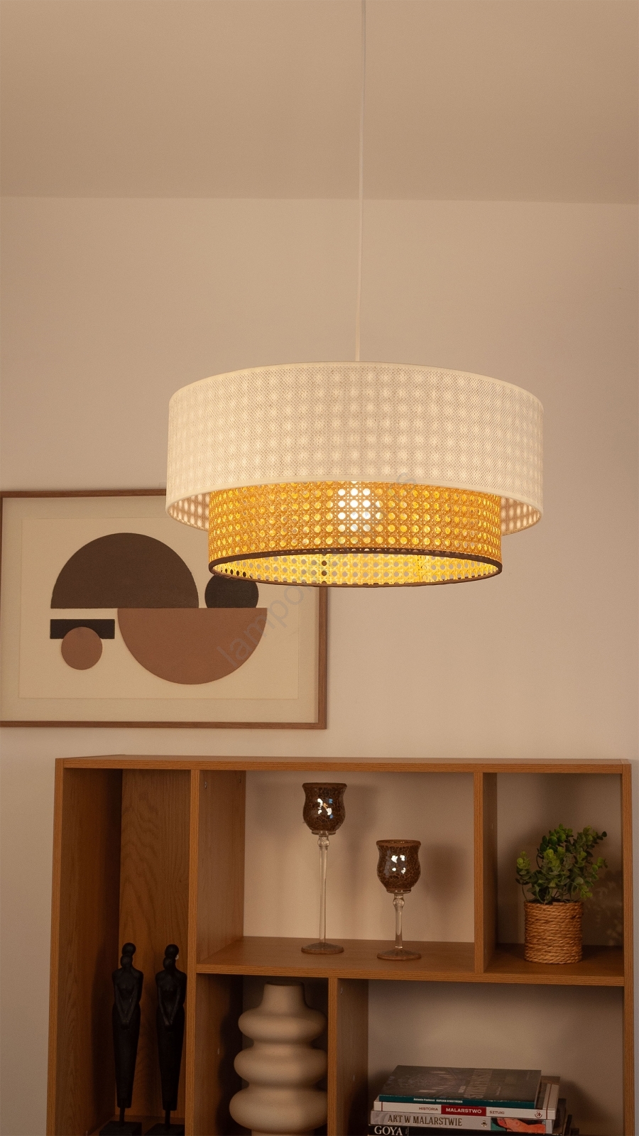 • Luster na sajli NATIA 1xE27/60W/230V, prečnik 45 cm, bela/braon