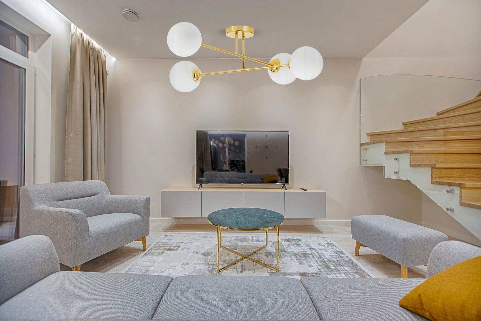 Luster na šipci 4xE27/35W/230V, prečnik 70 cm, zlatan | Lampomanija