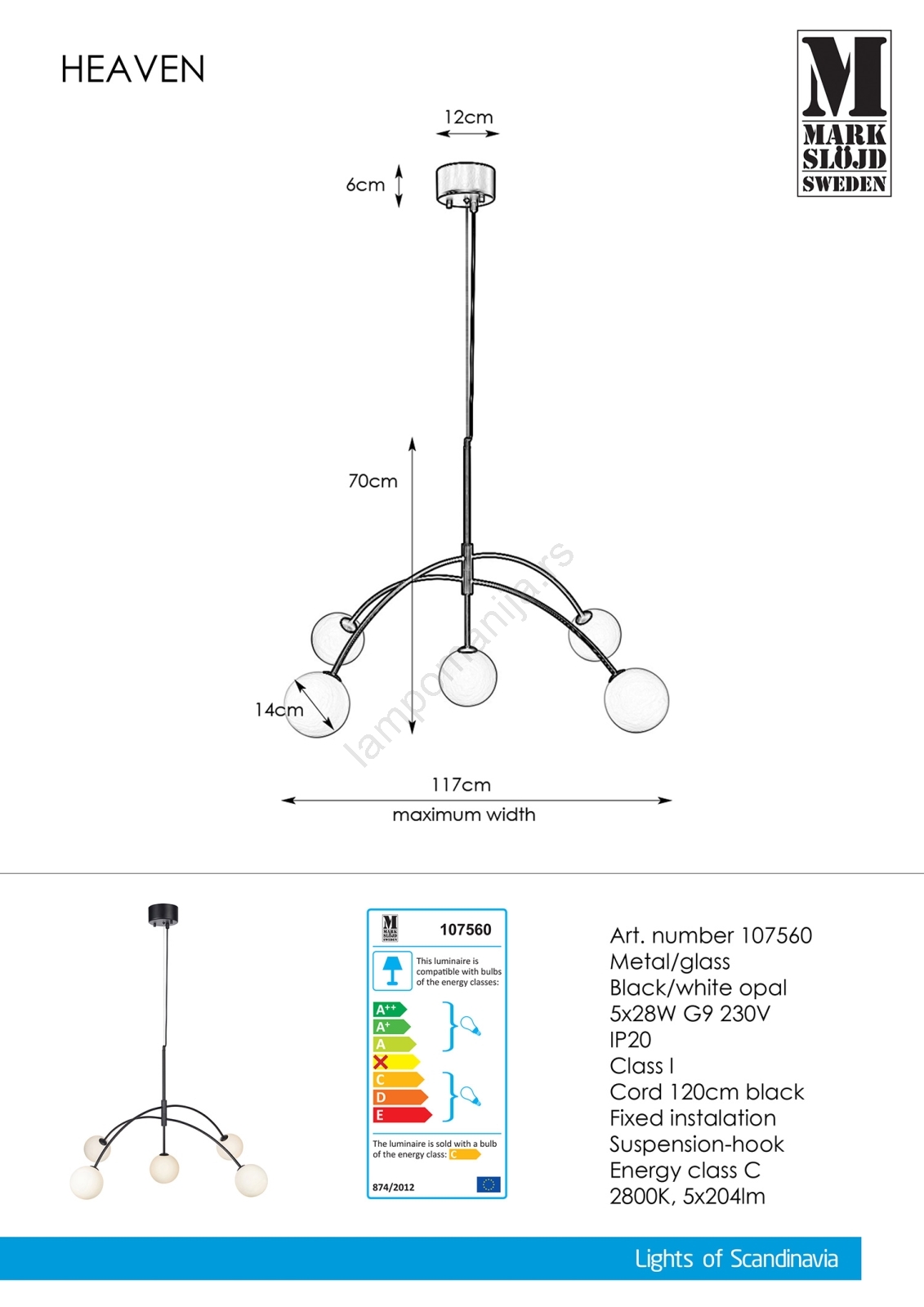 Markslöjd 107560 - Luster na sajli HEAVEN 5xG9/28W/230V