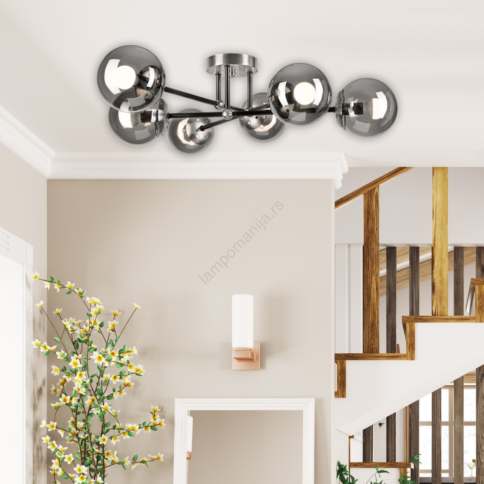 Prislonjen luster MALENA 6xE14/5W/230V mat hrom/dimljeno | Lampomanija