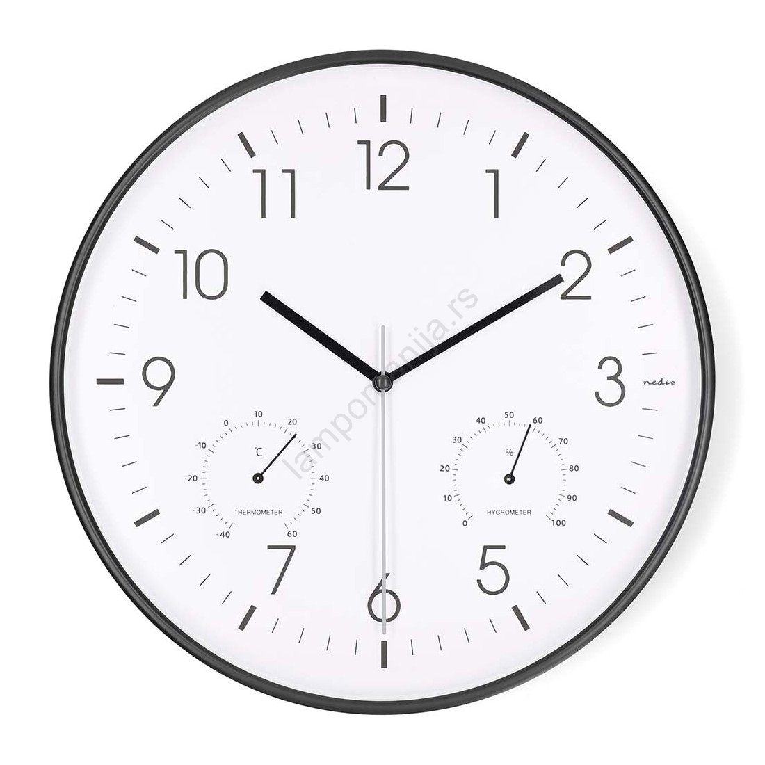 Zidni sat sa termometrom i higrometrom, prečnika 30,5 cm, 1xAA, crne boje