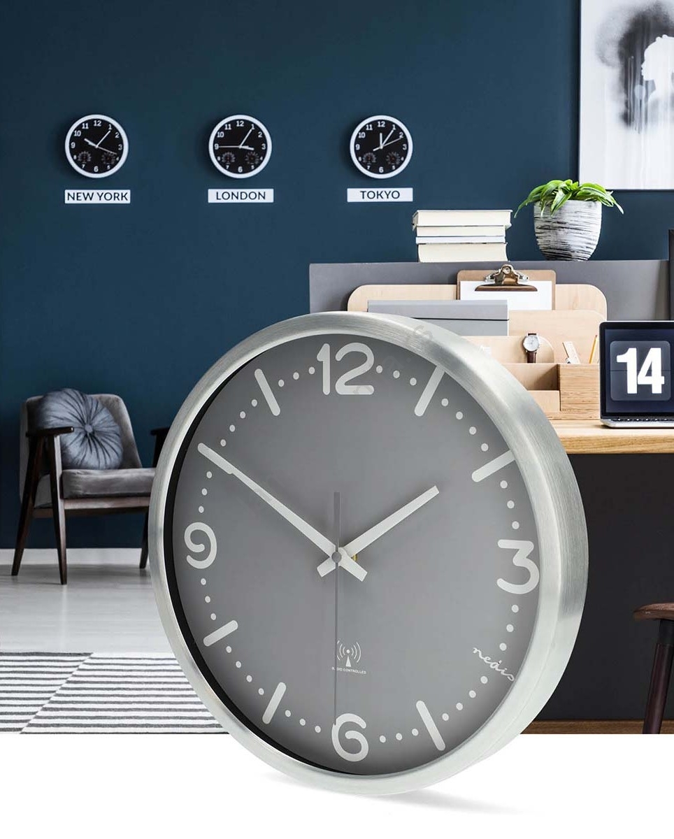 Zidni sat prečnik 30,5 cm 1xAA mat hrom/siva