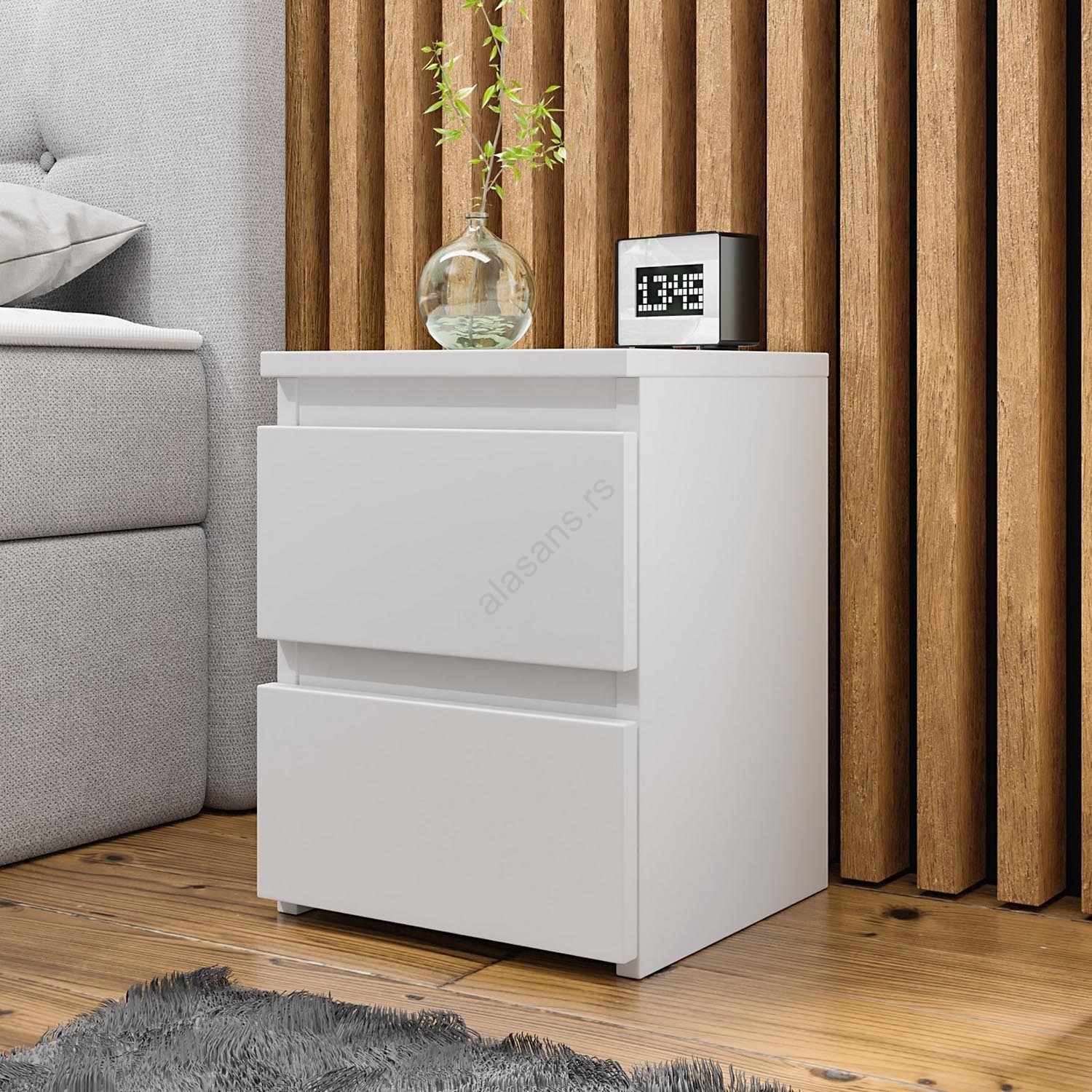 Noćni stočić MALWA 40x30 cm, sjajna bela