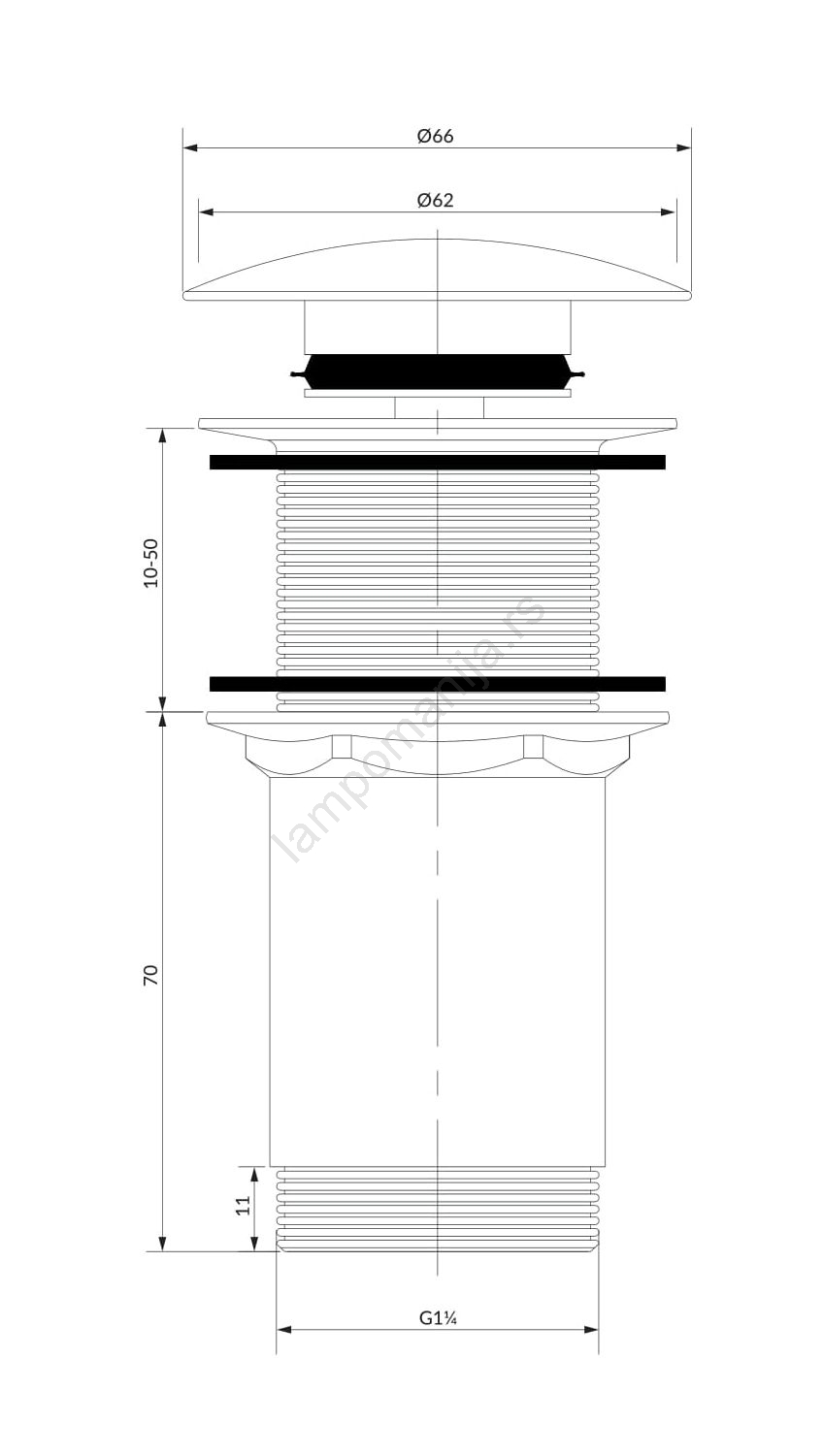 OMNIRES A716BL - Slivnik za umivaonik CLICK-CLACK, prečnik 6,6 cm, polumat crne boje