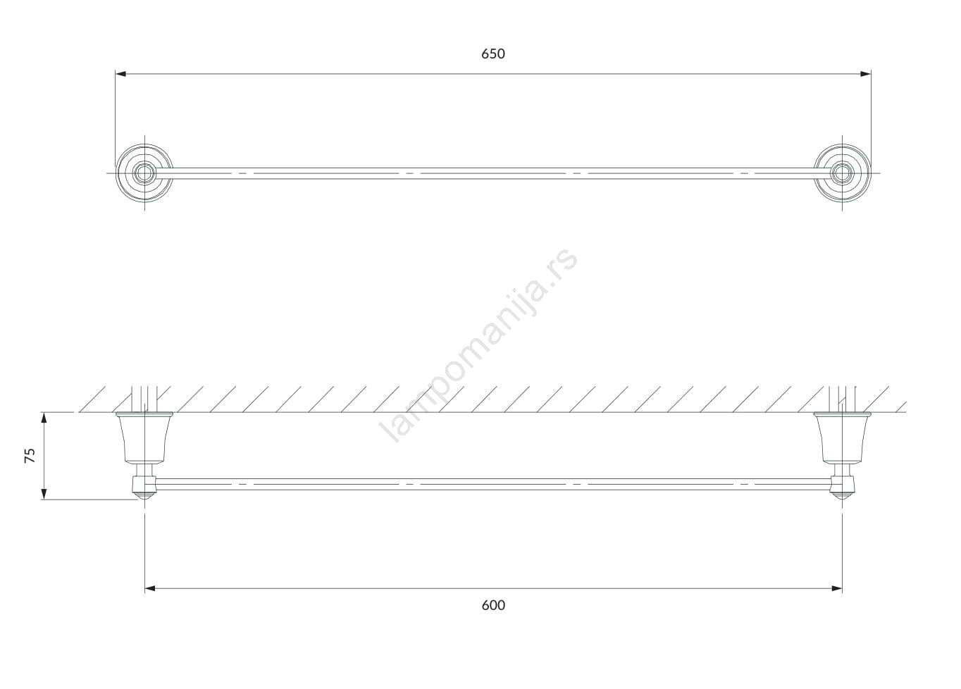 OMNIRES AL53216CR - Zidni držač za peškire ART LINE 65 cm, sjajni hrom
