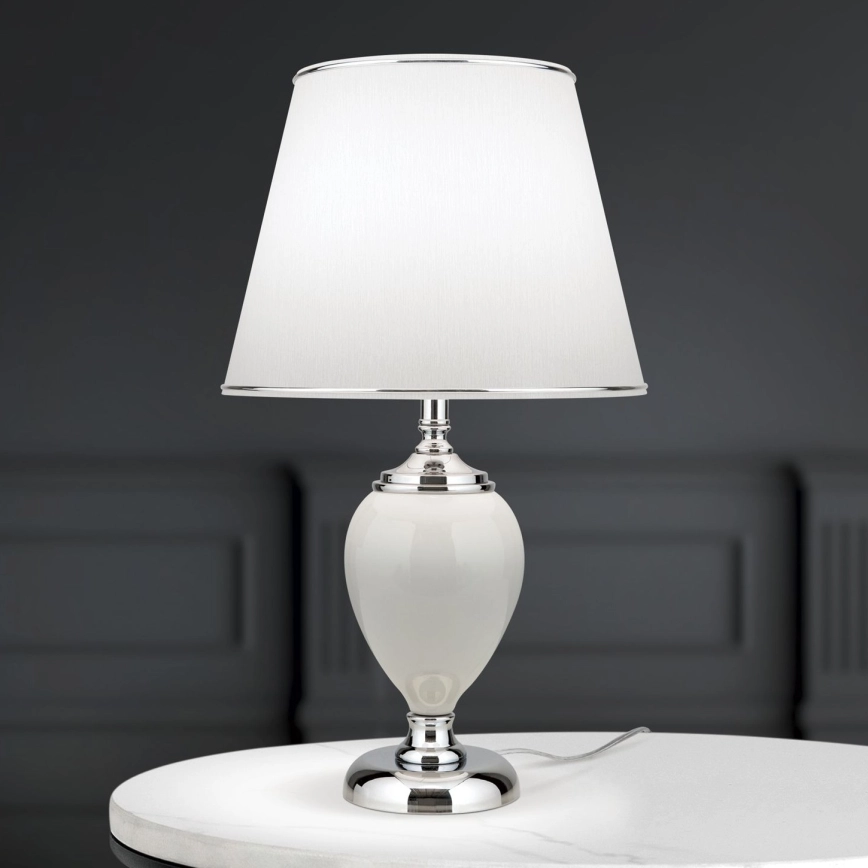Stona lampa OVUM 1xE27/40W/230V, visina 48 cm, keramička, bela/sjajni hrom