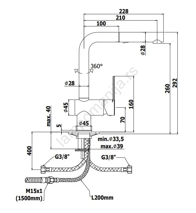• Izvlačna prskalica sa dva režima prskanja za praktično ispiranje sudopere i posuđa.