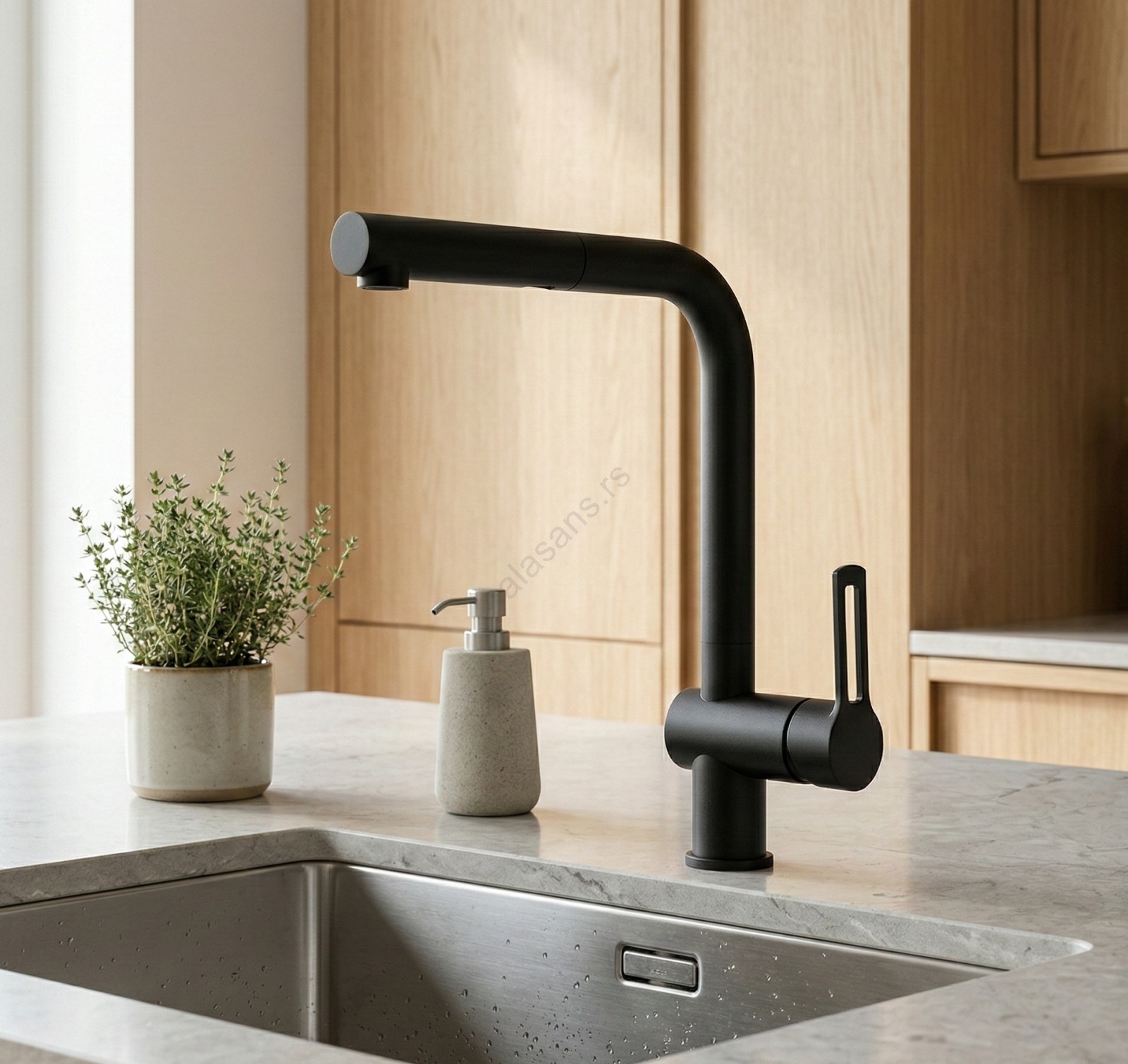 Paffoni - Kuhinjska slavina sa izvlačivom prskalicom RINGO 29,2 cm crna | Lampomanija