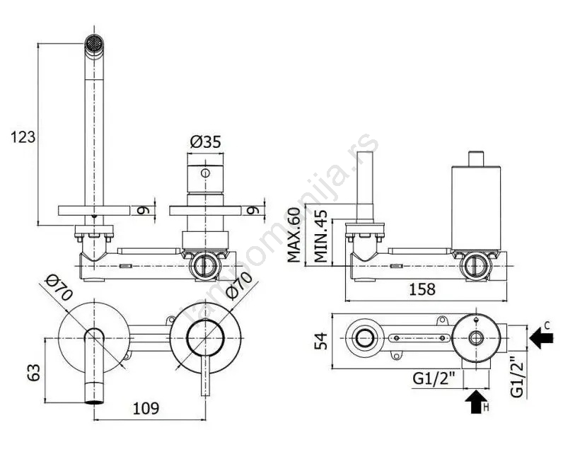 • Fiksni izljev sa ugrađenim perlátorom za štedljiv i prijatan mlaz vode.