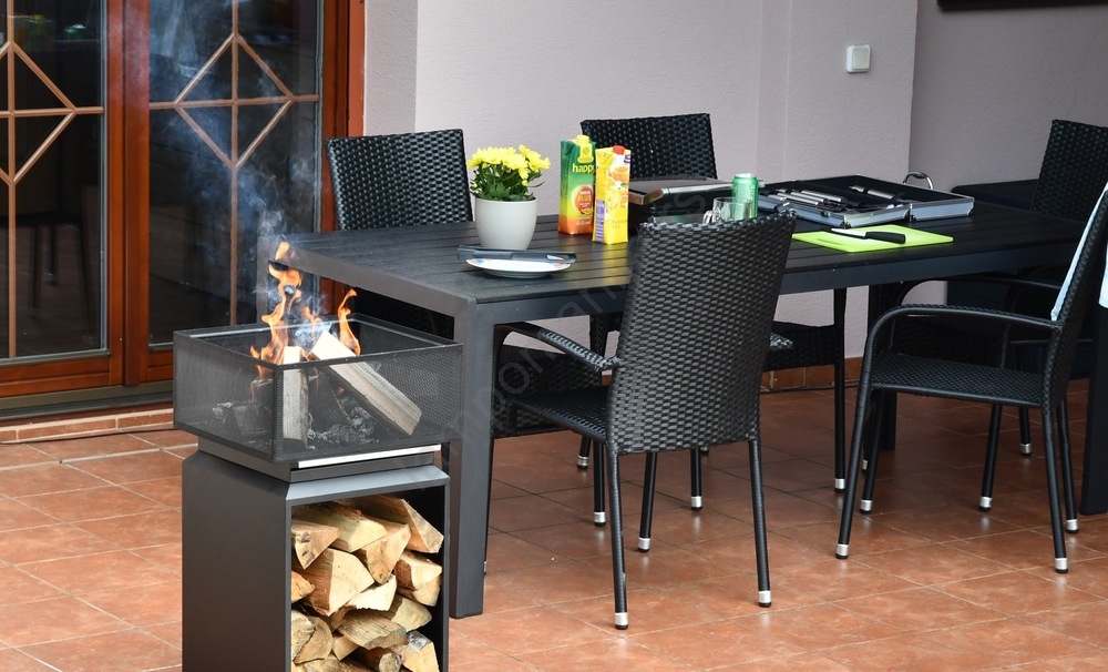 • Prenosivo ognjište za drva CUBE, sa kvadratnom konstrukcijom i prostorom za odlaganje drva, pogodno za terase i bašte.