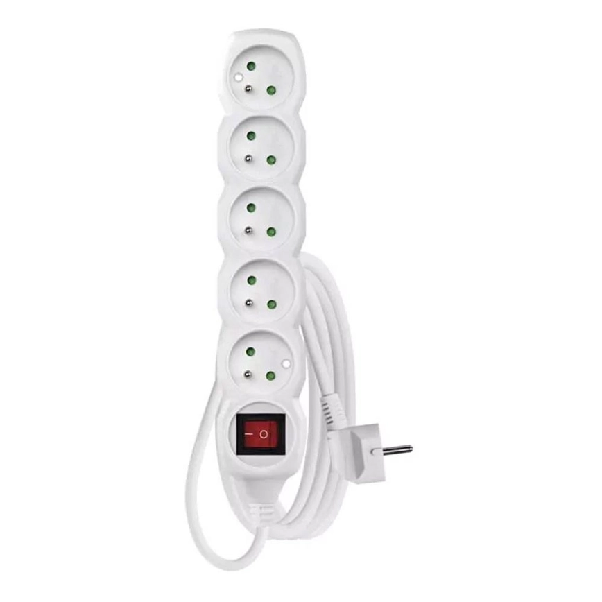 Produžni kabl sa prekidačem, 5 utičnica, 3 m, bela | Lampomanija
