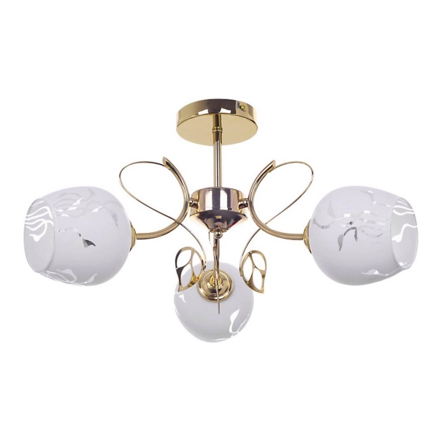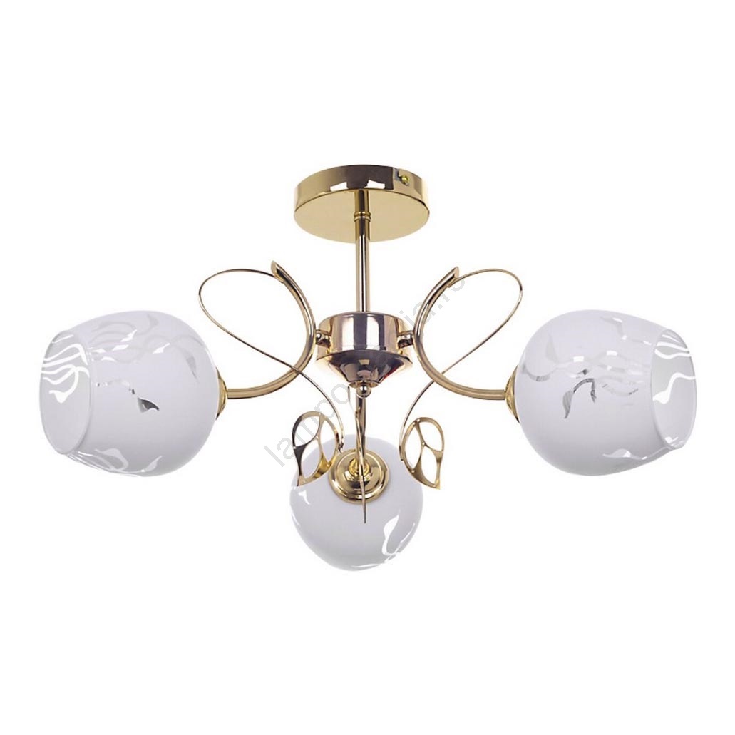 Trostruko plafonsko svetlo Fauna u klasičnom stilu biće elegantan dodatak uređenju vašeg tradicionalnog dnevnog boravka ili spavaće sobe. Abažuri od belog stakla sa uzorkom pričvršćeni su za zlatnu metalnu konstrukciju. Svetlo se montira na plafon pomoću okrugle dekorativne rozete. Okrugli abažuri sa otvorenim donjim delom pričvršćeni su na grane koje se uvijaju poput loze i ukrašene su zlatnim listovima. Svetlo Fauna predviđeno je za tri sijalice, svaka maksimalno 40 W; tip grla: E27. Ako želite da pojačate intimnu i prijatnu atmosferu, odaberite sijalice sa toplim belim svetlom. Dimenzije trostrukog plafonskog svetla Fauna su: prečnik 560 mm, udaljenost od plafona 290 mm, montažni prečnik 120 mm. Ovaj model se isporučuje bez sijalica.