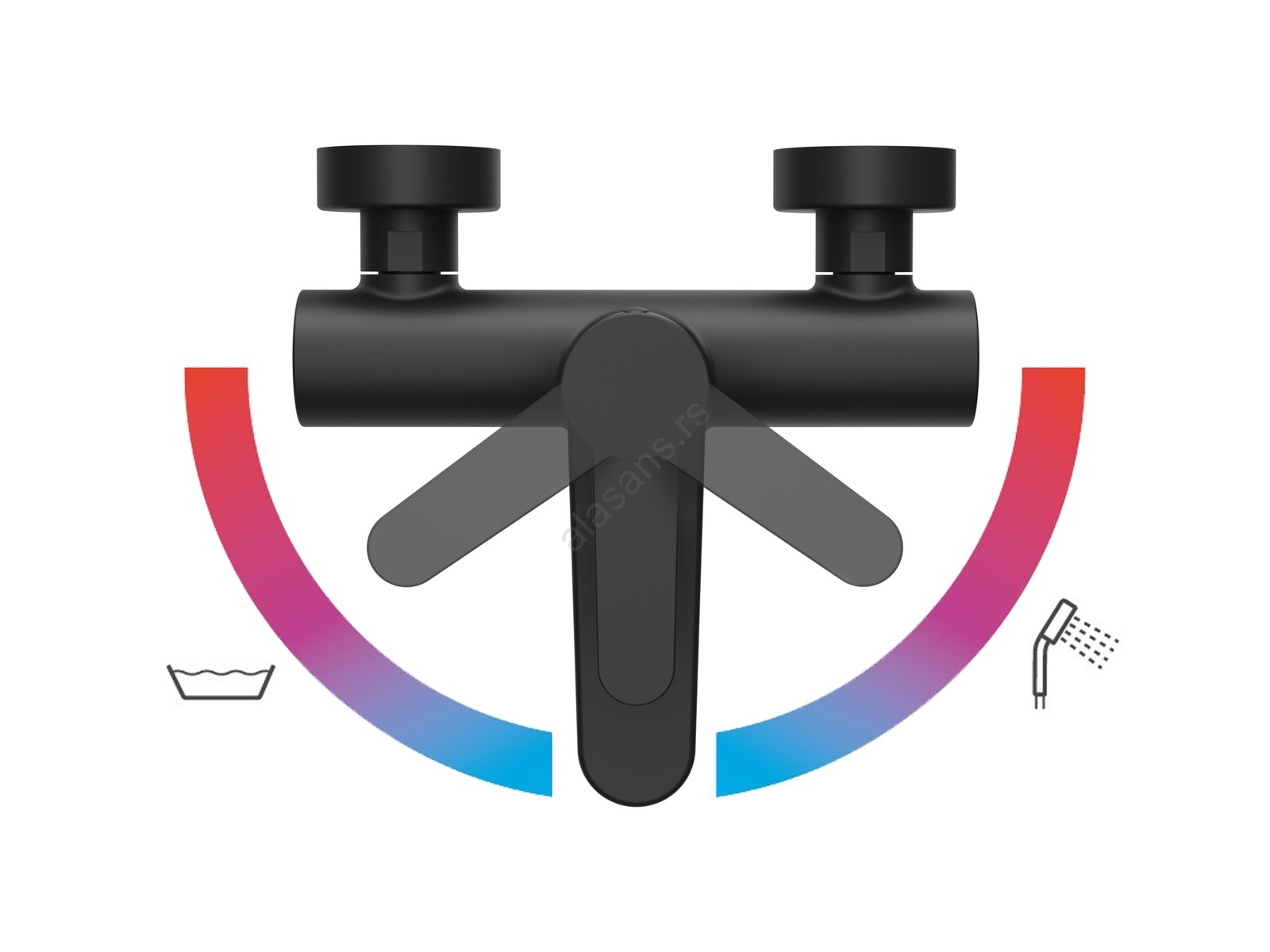 • Pomakom poluge udesno (tuš) ili ulevo (kada) reguliše se samo temperatura vode, protok ostaje stabilan.