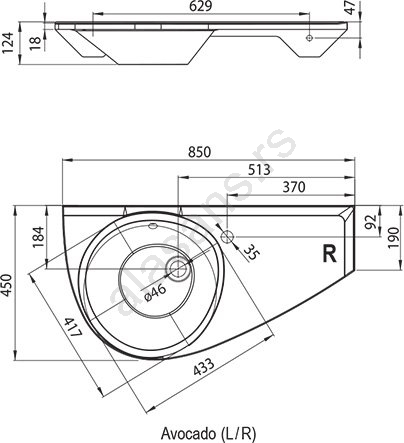• Dimenzije umivaonika su 85 x 45 cm, što omogućava ugradnju i u užim prostorima, na primer iznad kade Avocado.