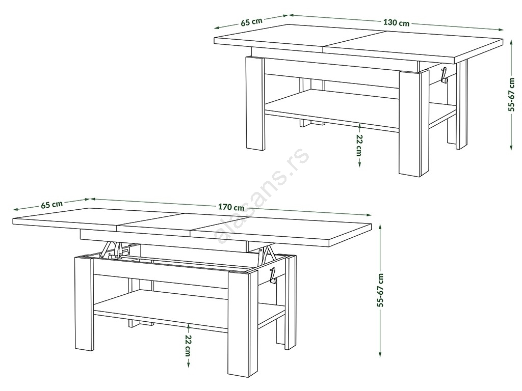 • Dimenzije rasklopljenog stola: 170x65 cm.