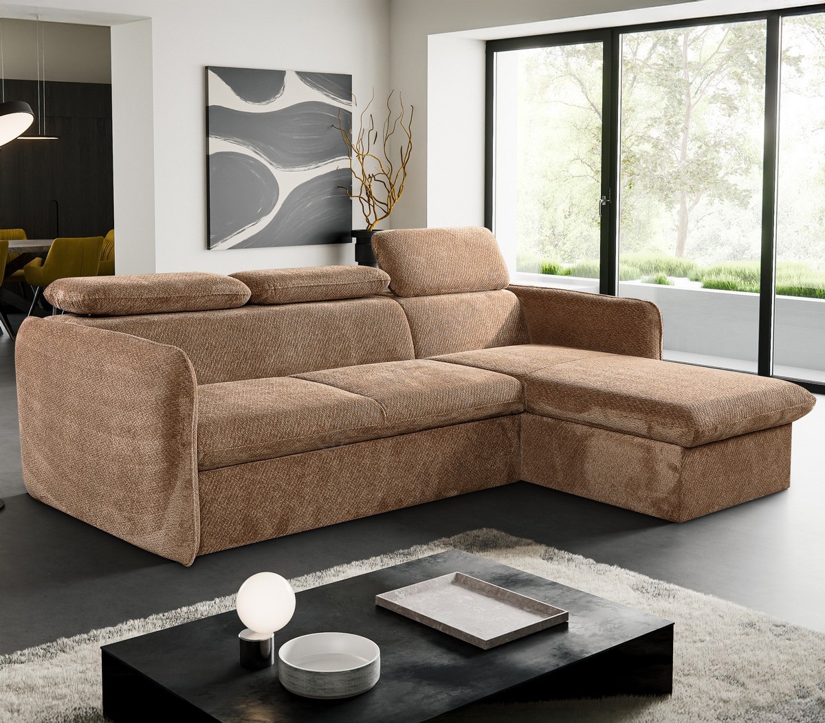 • Razvlačna ugaona garnitura u obliku slova L je kombinacija komfora, praktičnosti i funkcionalnosti.