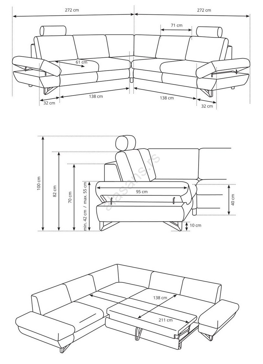 • Zahvaljujući funkciji za spavanje (delfin mehanizam) lako se pretvara u komforan prostor za spavanje.