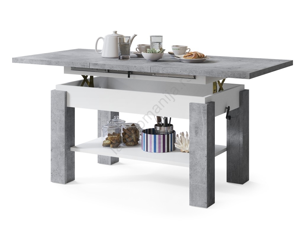 Razvučni konferencijski sto sa policom ADONIS 110/150x68 cm sivi beton/bela