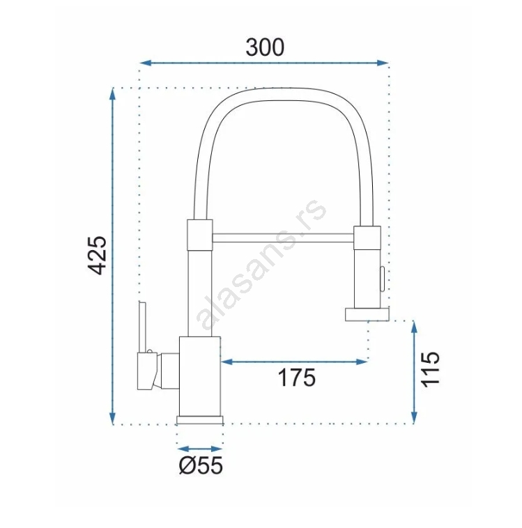 • Jednoručna kuhinjska baterija visokog pritiska sa rotirajućim izljevom.