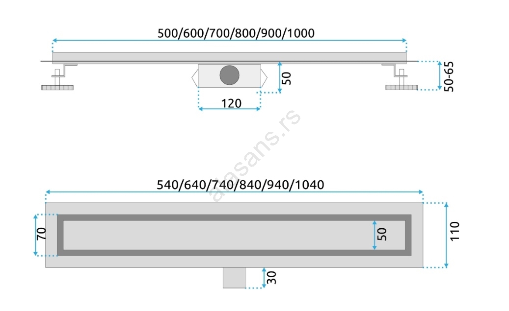 • Linijski odvod dužine 70 cm u dekoru boje nerđajućeg čelika.