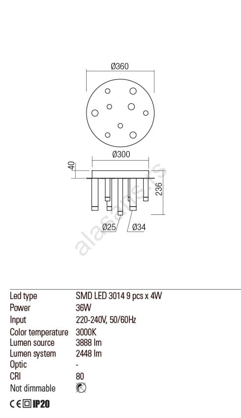 • Redo 01-2041 - LED plafonsko svetlo MADISON 9xLED/4W/230V crna