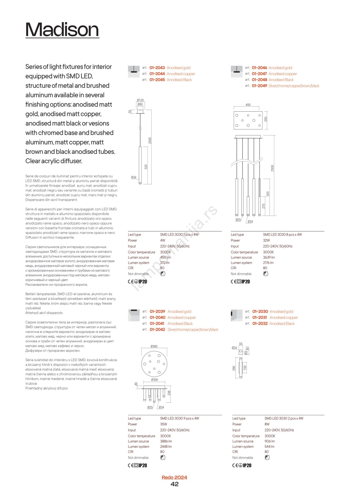 • Redo 01-2050 - LED luster na sajli MADISON 8xLED/4W/230V zlatna