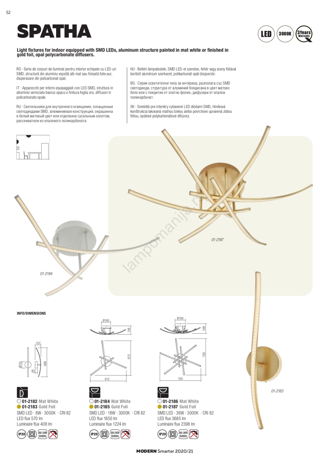 Redo 01-2185 - LED plafonsko svetlo SPATHA 3xLED/6W/230V 3000K zlatno | Lampomanija