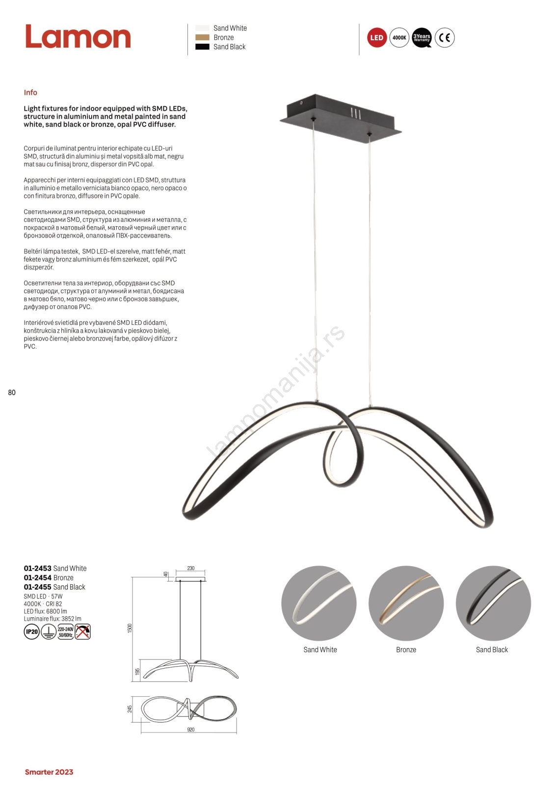 Redo 01-2455 - LED luster na sajli LAMON LED/57W/230V, crne boje