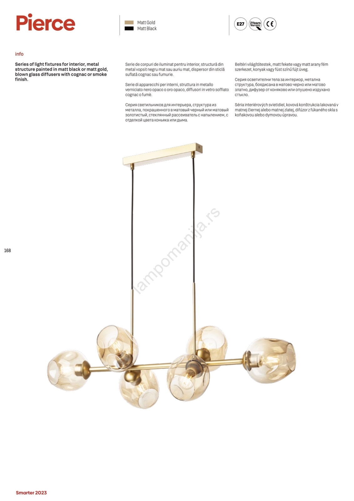 • Redo 01-2619 - Luster na sajli PIERCE 6xE27/42W/230V zlatna/dimljena