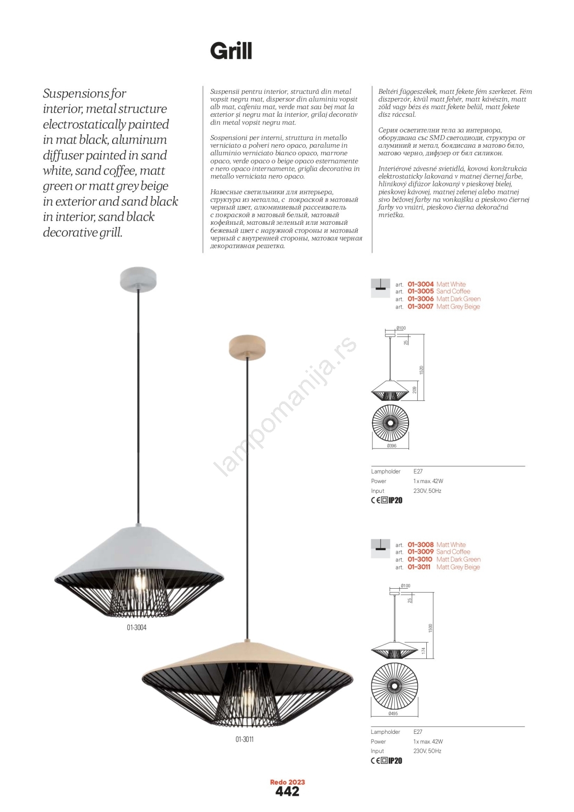• Redo 01-3004 - Luster na sajli GRILL 1xE27/42W/230V prečnik 39,6 cm crna/bela