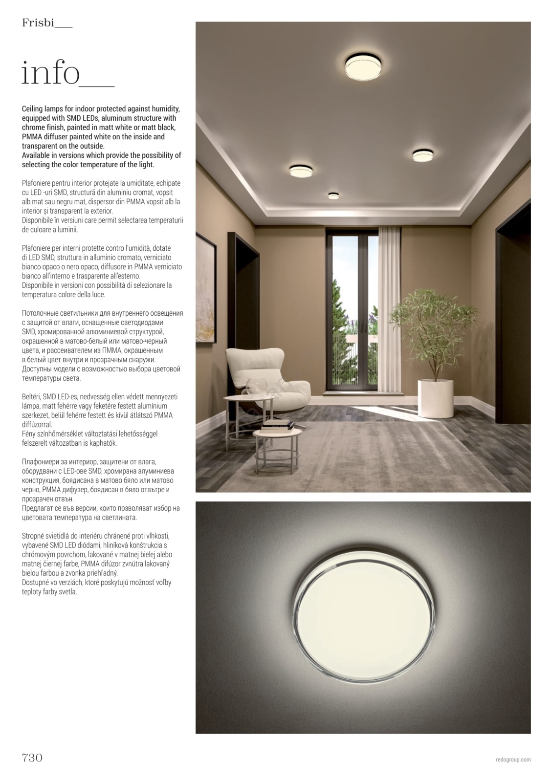 • Redo 01-3731 - FRISBI LED plafonsko svetlo za kupatilo, 12W, 230V, Ø 23 cm, CRI 90, 3000/4000K, IP44, belo