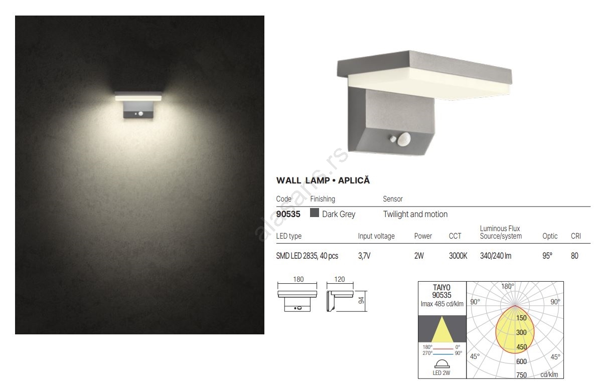Redo 90535 - LED solarna svetiljka sa senzorom TAIYO LED/2W/3,7V 3000K IP54 antracit | Lampomanija
