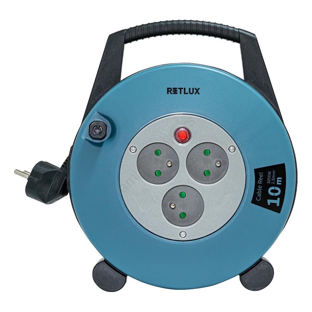 Retlux - Produžni kabl na kolutu sa 3 utičnice, tip E, 10 m, boje plave i crne | Lampomanija