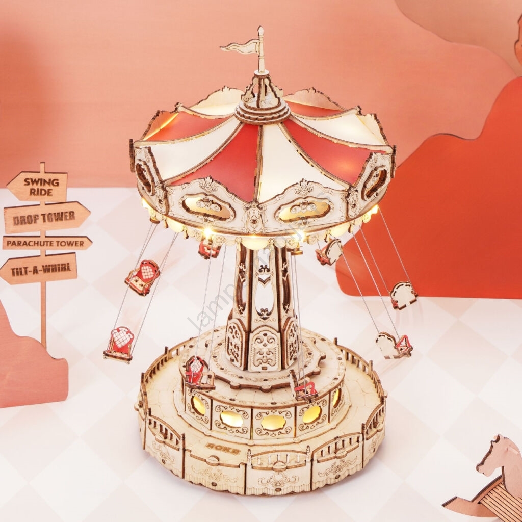 • Privlačno dekorisan model klasičnog lančanog vrtuljka koji, reprodukujući romantičnu melodiju, stvara jedinstvenu atmosferu.