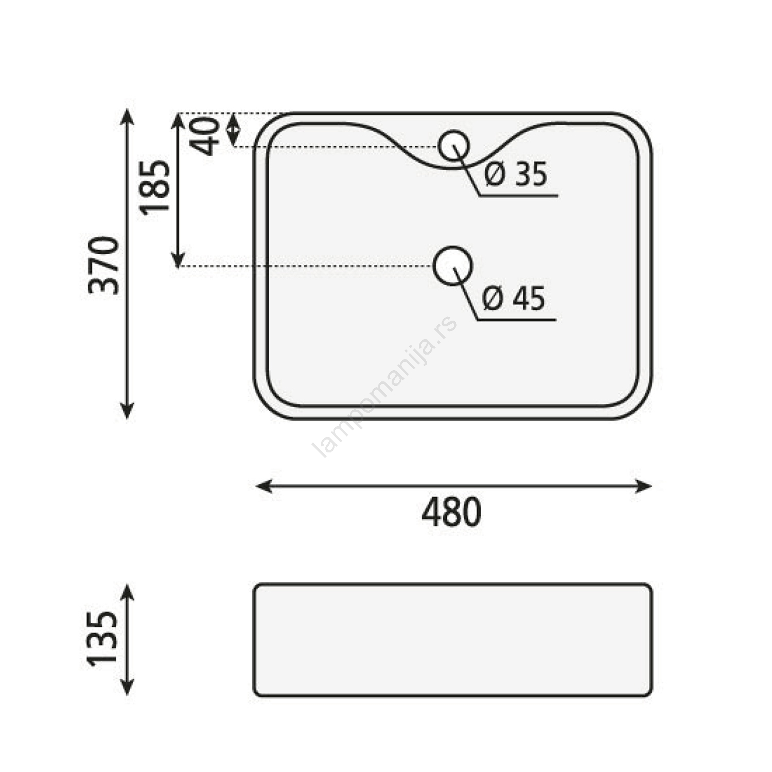 • Dimenzije su 480x370 mm i oblik je pravougaoni.