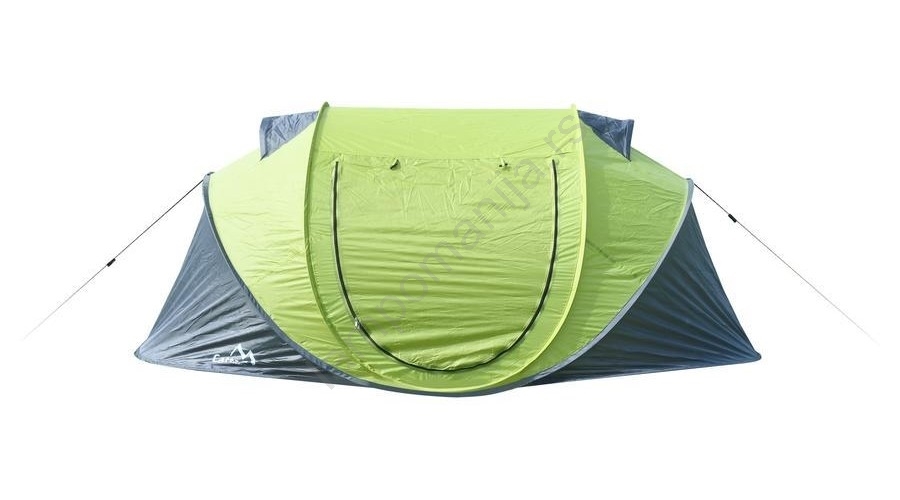 • Šator je dovoljno samo izvaditi iz pakovanja i, nakon rasklapanja, učvrstiti pomoću kolčića za osnovu i kolčića za zatezanje, uz podesive konopce u uglovima.