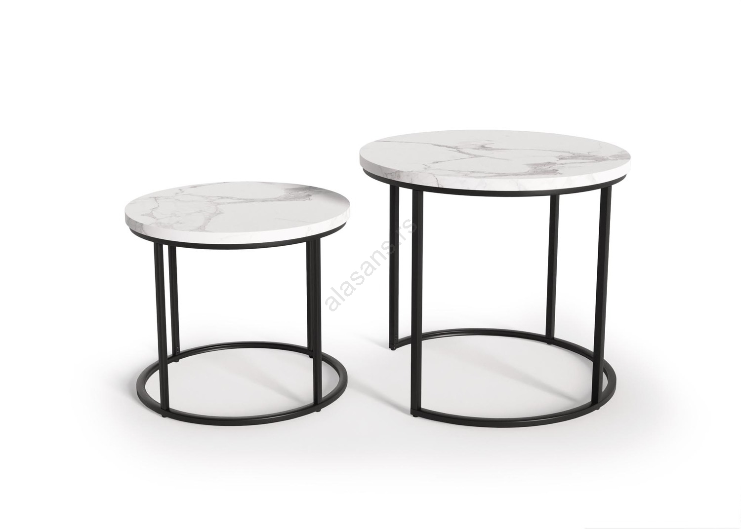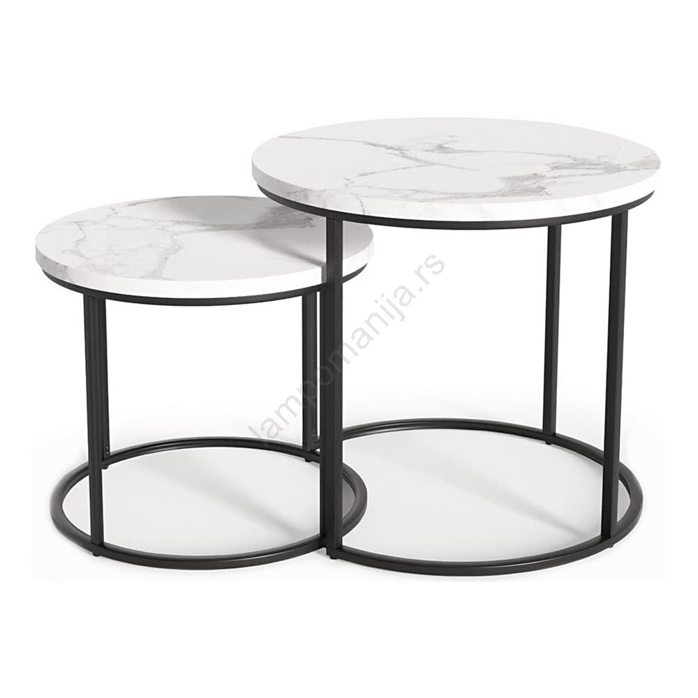 SET 2x stočića za kafu OREO, prečnika 43/53 cm, crna/mramorni dekor | Lampomanija