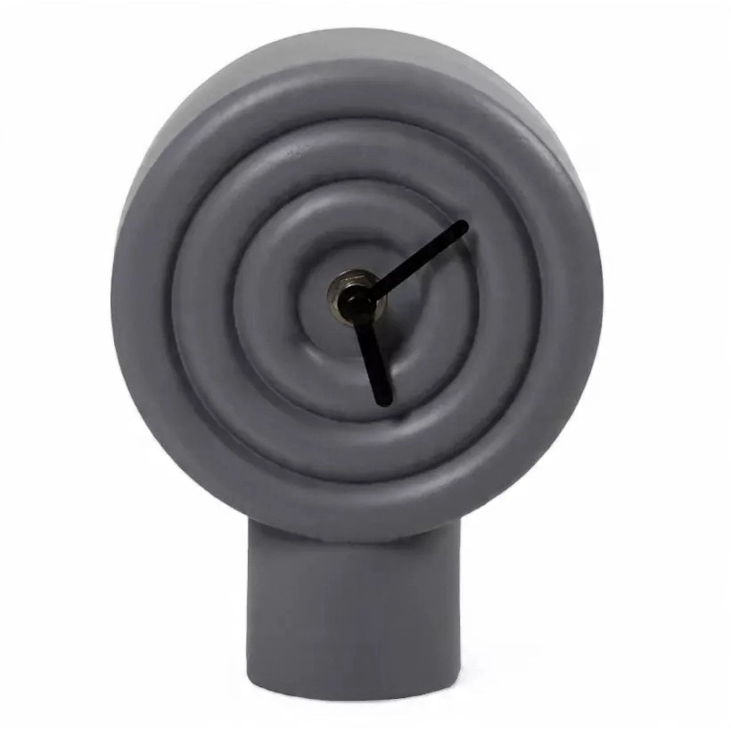 • Dekorativni stoni sat elegantnog oblika u sivoj boji.