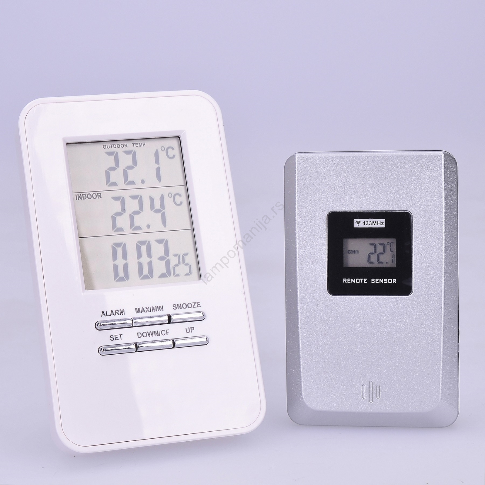 • Napajanje: glavna jedinica - 2x AAA (LR03) baterije (nisu uključene u paketu), senzor: 2x AAA (LR03) baterije (nisu uključene u paketu).