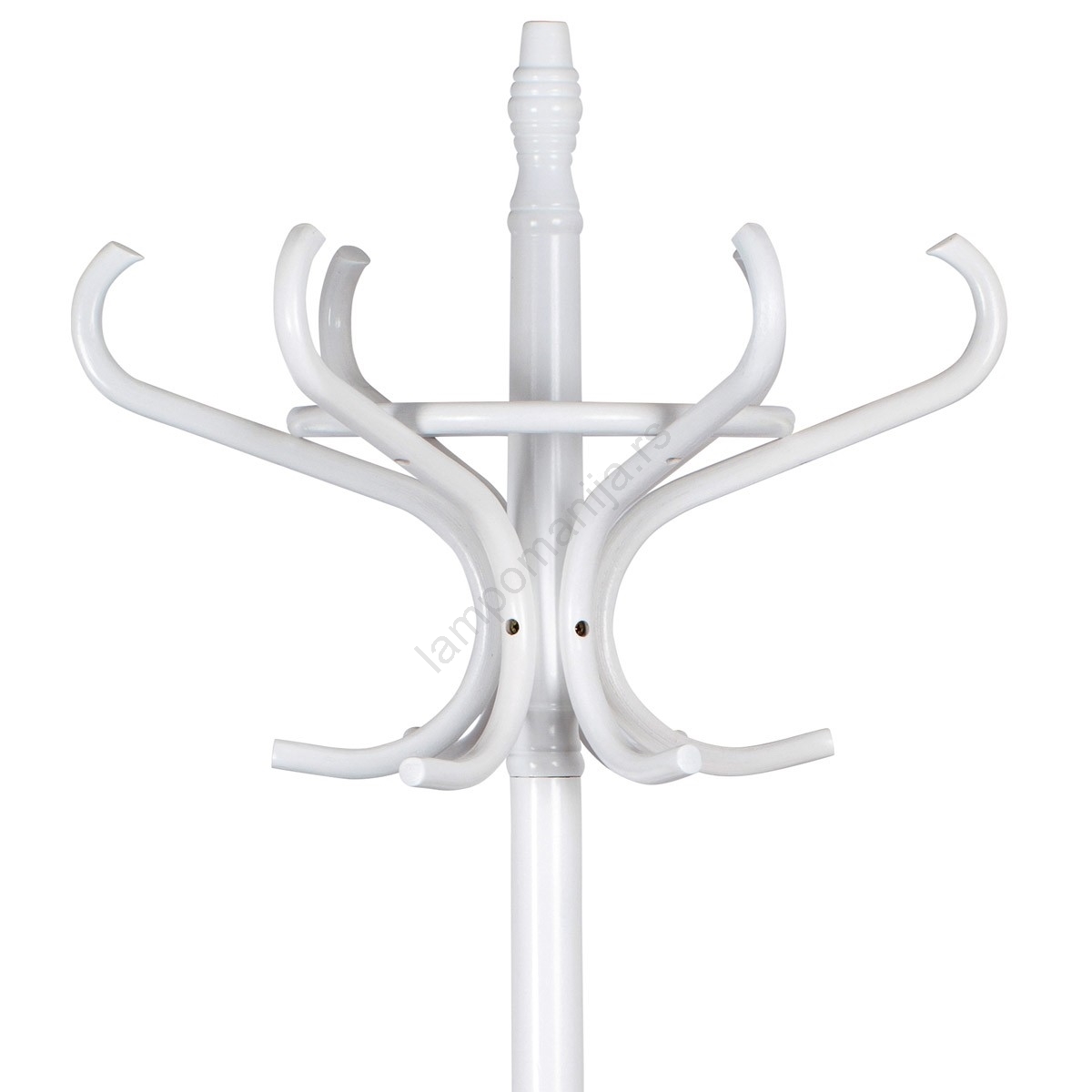 • Njegovo telo čini stabilna noga sa elegantno zakrivljenim kukama raspoređenim na dve visine, koje pružaju dovoljno prostora za kačenje kaputa, šešira ili šalova.