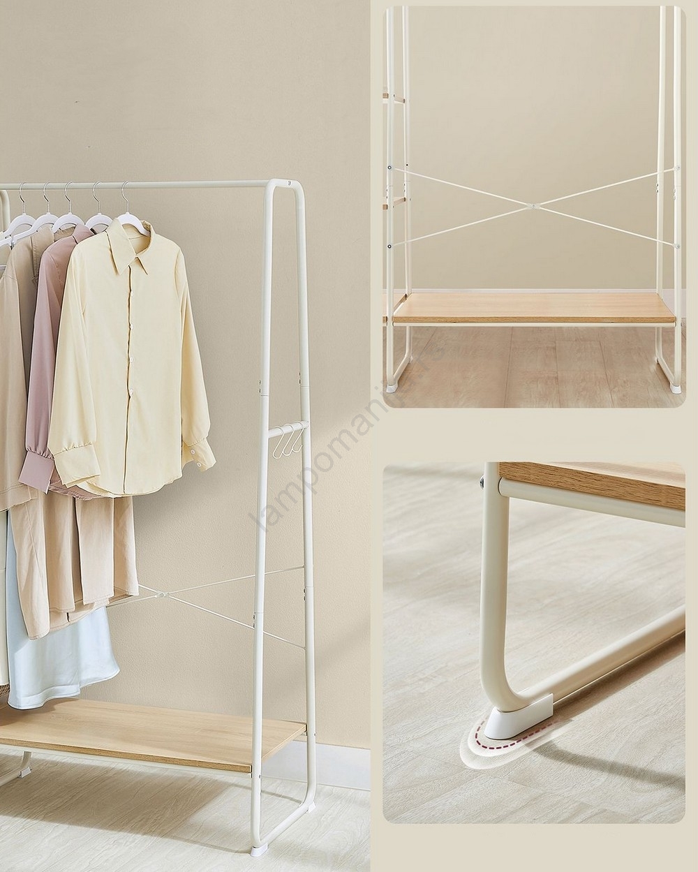 • Okačite jakne, košulje i pantalone na gornju prečku duž cele dužine, na 6 odlagarnih polica smestite torbe, obuću, kutije,  šešire, šalove, kišobrane i druge neophodne stvari.