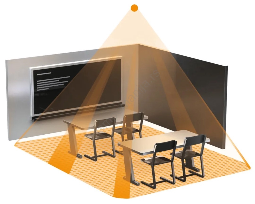 • Visokoprecizan infracrveni senzor sa zonom detekcije prisustva 49 m² (7 x 7 m).