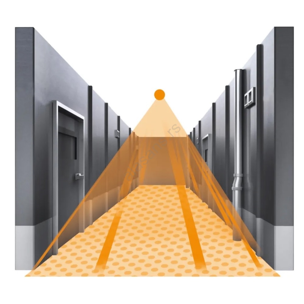 • Hodnici imaju posebne zahteve u pogledu performansi senzora; za potpuno pokrivanje detekciono polje mora biti usko i dugo (23 m x 6 m).