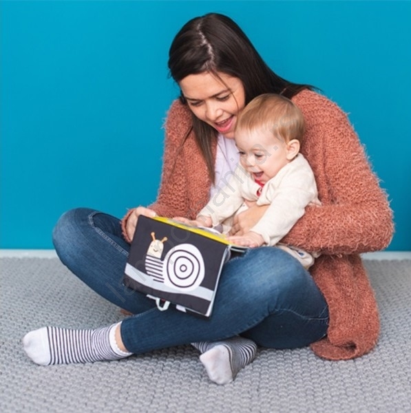 • 0-3 meseca: stranice sa sigurnim ogledalom i jednostavnim ilustracijama visokog kontrasta koje podstiču razvoj čula i emocionalne inteligencije deteta.