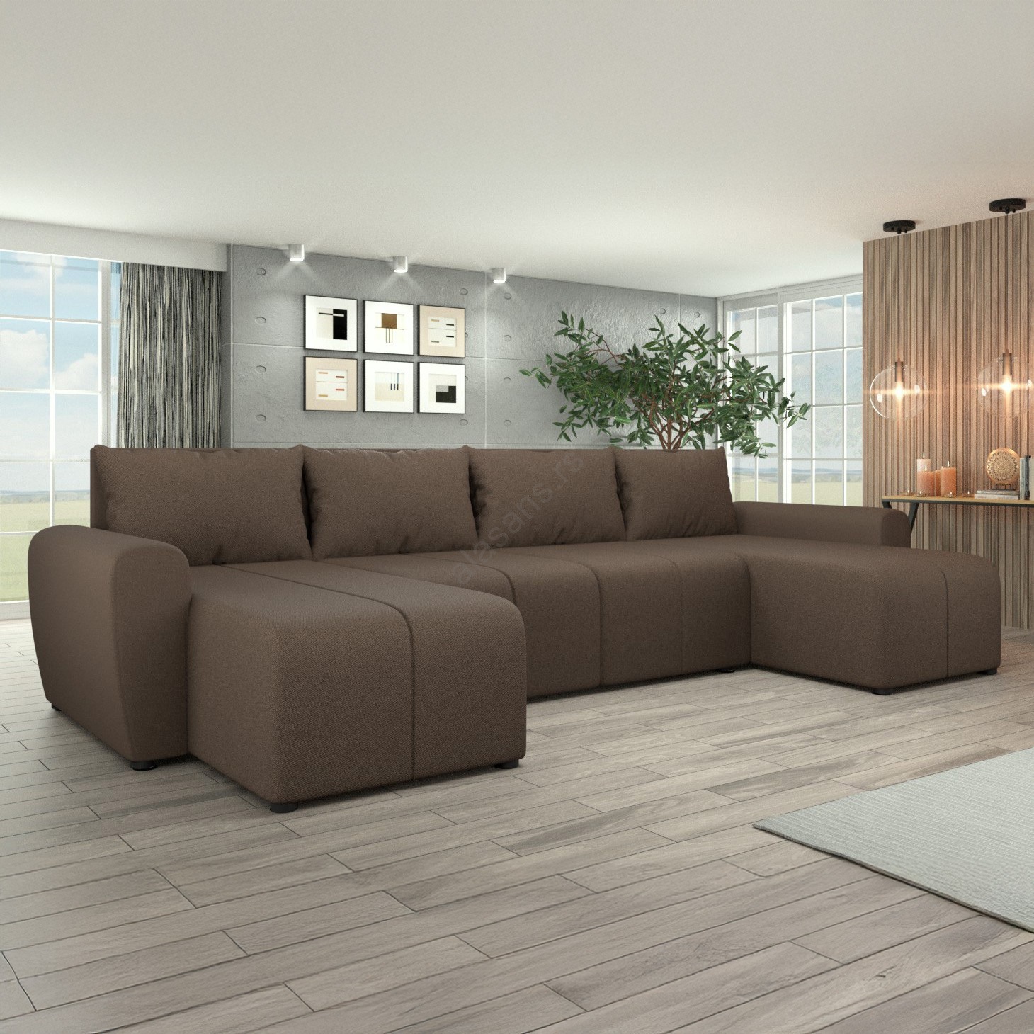 Tapacirana univerzalna rasklopiva ugaona garnitura NEWPORT u obliku slova U, braon | Lampomanija