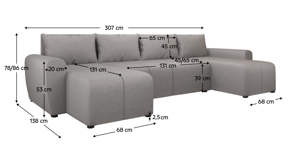 • Tapacirana univerzalna razvlačiva garnitura u obliku slova U NEWPORT bež