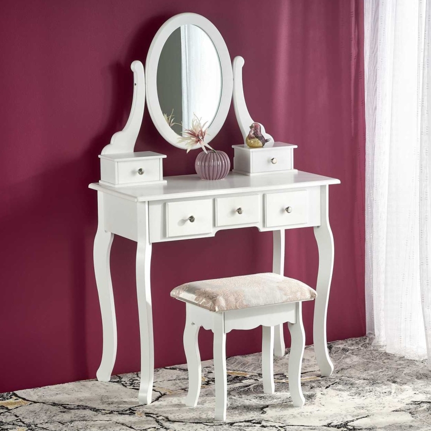 Toaletni sto SARA 80x130 cm + tabure 45x37 cm bela | Lampomanija