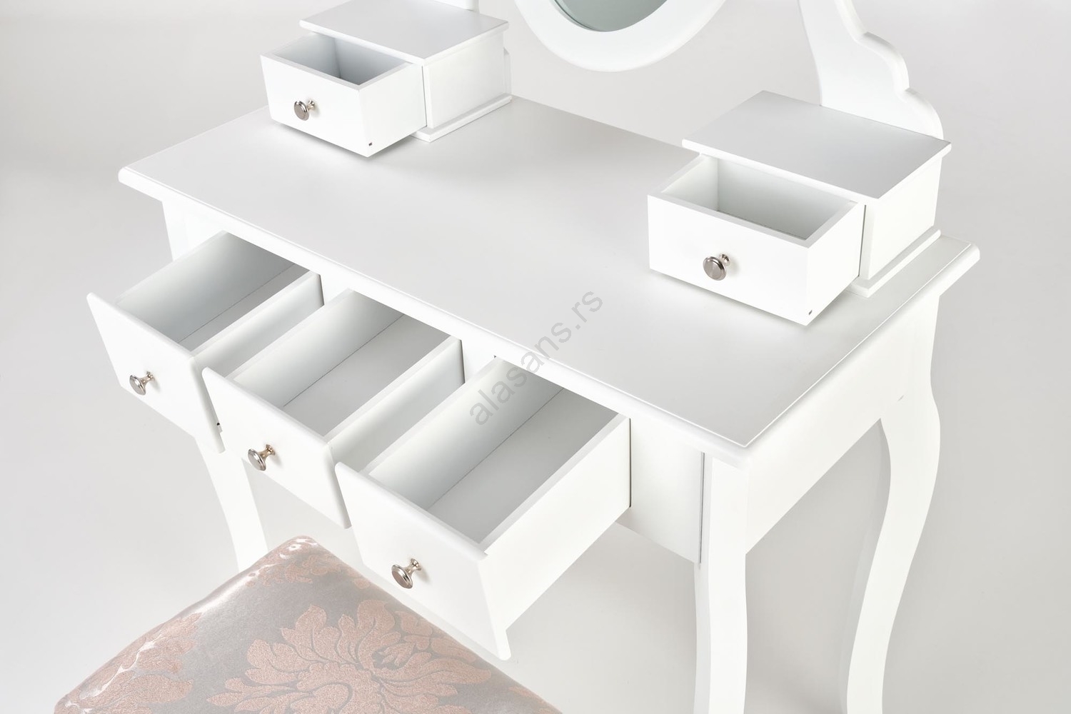 • Toaletni stočić sa ogledalom i tabureom.